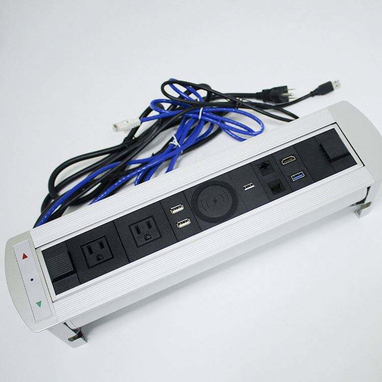 Caja de enchufe abatible Vticnica automática motorizada para mesa de conferencias, tira de alimentación empotrada con puertos de carga USB