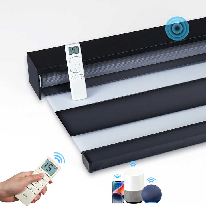 Persianas Enrollables Inteligentes Motorizadas con Control Remoto, Cortinas Opacas Automáticas de Doble Capa para el Hogar y la Oficina