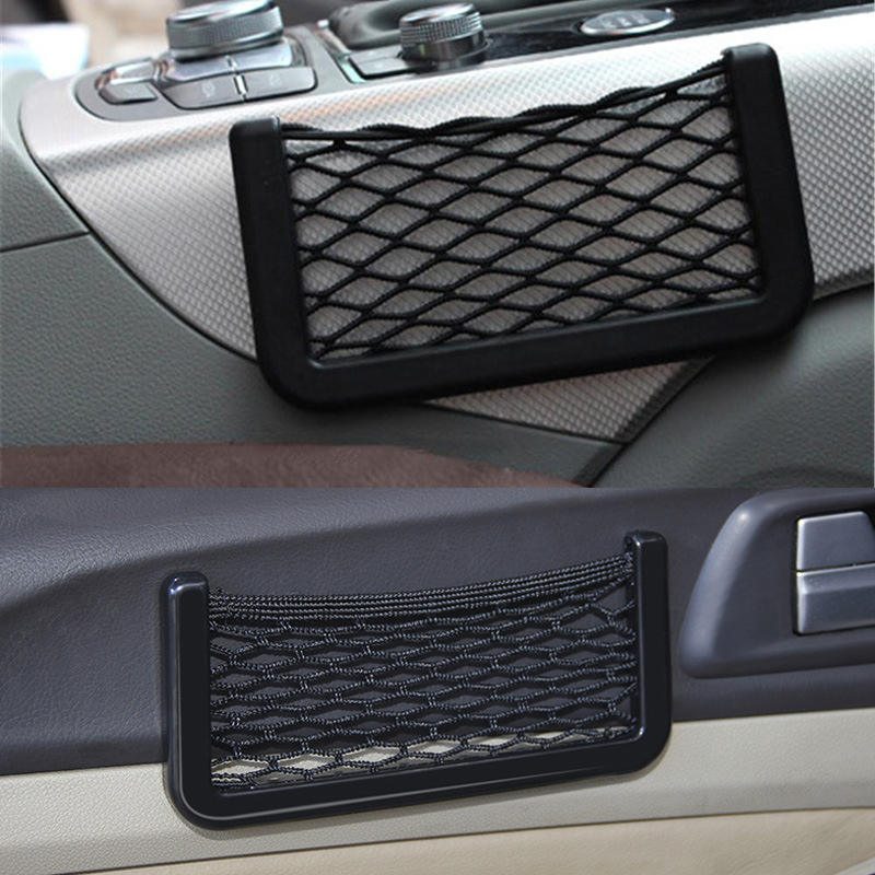 Organizador de almacenamiento en red para consola de coche Motorola, tamaño mediano/grande, con montaje adhesivo, bolsa de malla para consola central, para teléfono y accesorios