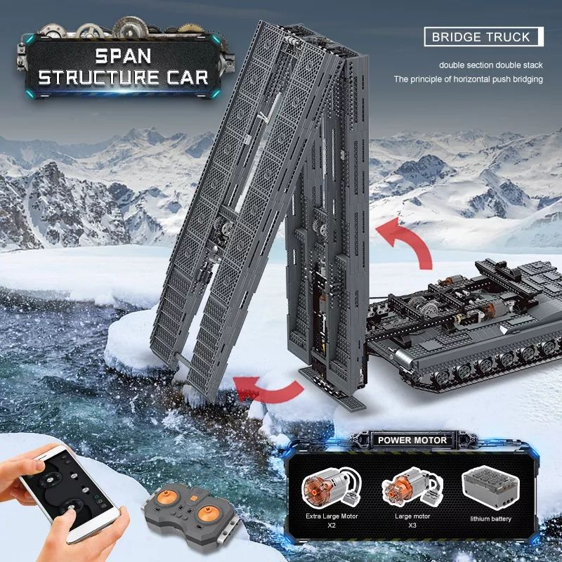 Mould King 20002 Tanque Militar de Control Remoto, Vehículo Blindado, Puente, Estructura de Coche, Juego de Bloques de Construcción para Niños