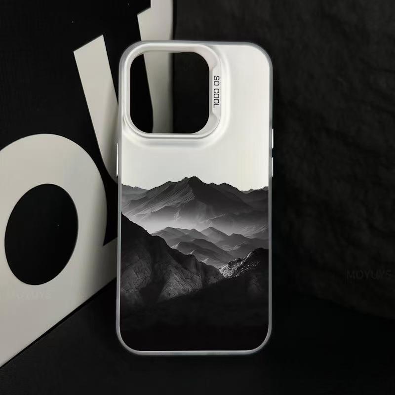 Mountain Range Printing Electroplated Silver Key TPU PC Funda para teléfono móvil para Iphone X Xr Xs Max 11 12 13 14 15 16 17 Air