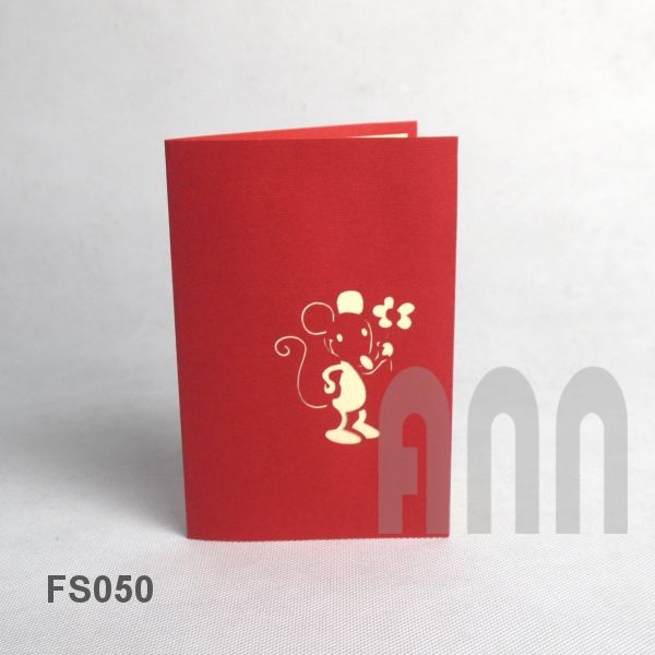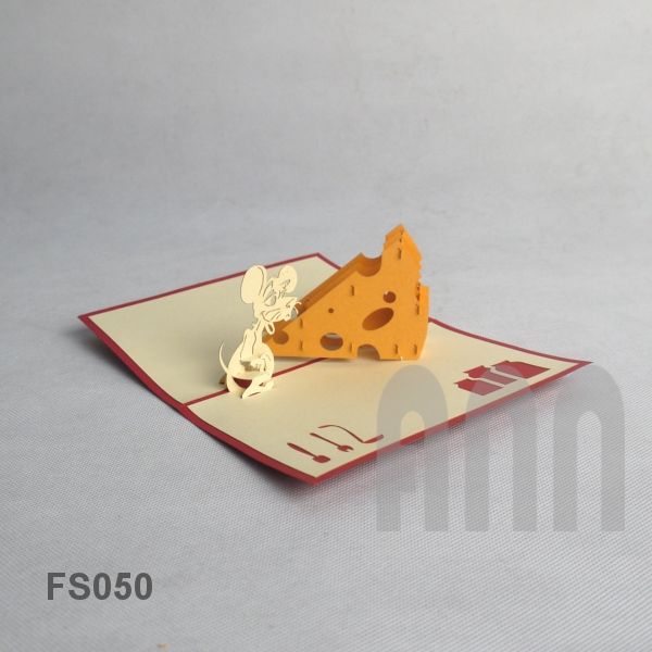 Mouse N' Cheese Tarjeta de felicitación de papel emergente 3D hecha a mano para cumpleaños y recuerdo del Día de San Valentín con sobre (Japón)