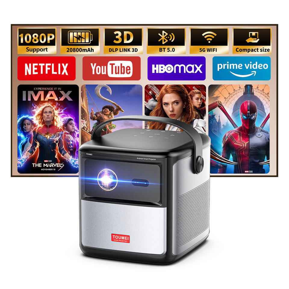 Proyector de Cine LED 450ANSI Compatible con Netflix/YouTube 1080P 4K, Batería Integrada, Android 11, Proyector Portátil S8 para Cine en Casa