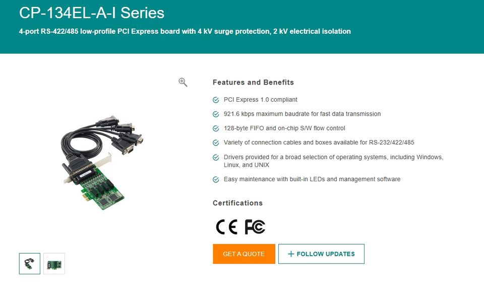 Tarjetas Moxa PCI Express/UPCI/PCI Serial con 4 Puertos Conector Hembra DB44 CP-134EL-A-I-DB25M