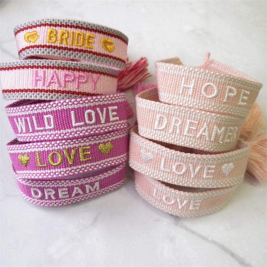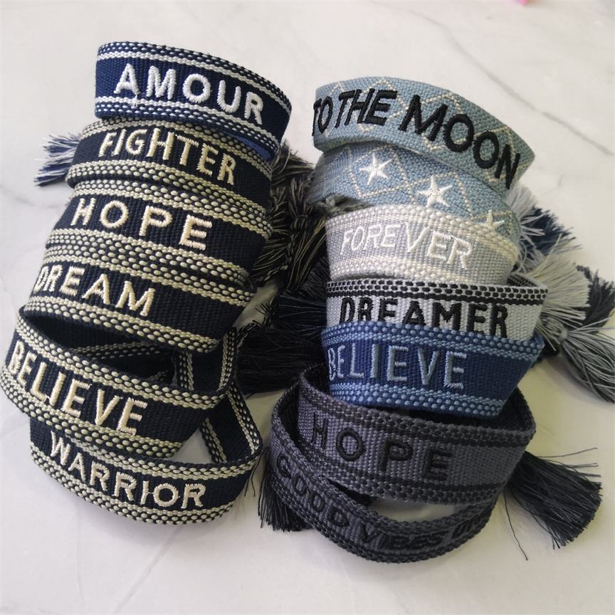 Pulsera Moyamiya Hecha a Mano, Más de 100 Textos en Existencia, Logotipo Personalizado, Pulsera de Amistad Tejida a la Moda con Borla