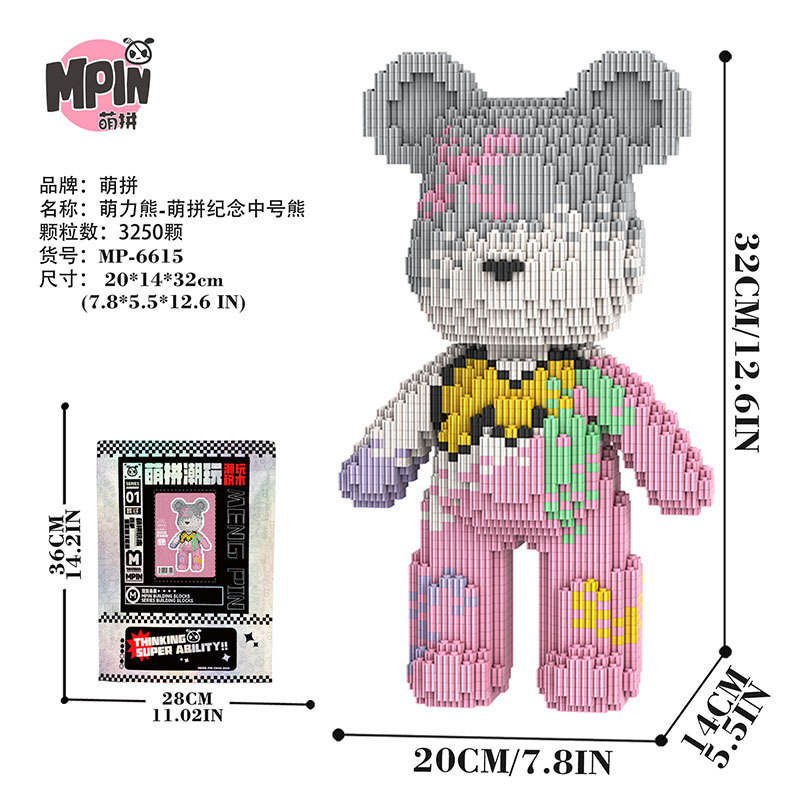 Mpin M6607 3150 Piezas Mini Bloques de Construcción de Partículas Pequeñas, Modelo de Osito de Caramelo, Juguete de Tamaño Mediano, Ladrillos Educativos DIY, Regalo para Niños
