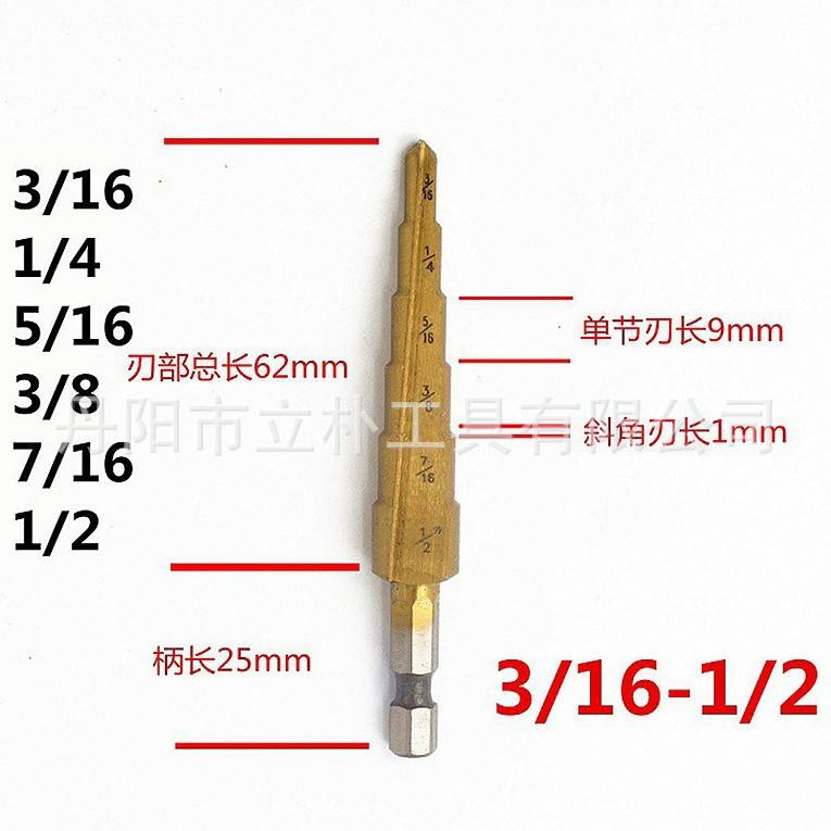 Mr Drill Inch Step Drill Bit 3/16-1/2 Hex Shank Steel Drilling Multi Purpose Tool