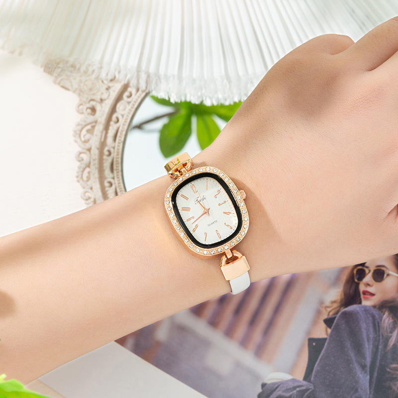 Reloj de Mujer Ms TADI Ecológico con Movimiento de Cuarzo, Estilo Antiguo, con Incrustaciones de Diamantes, Estilo INS, Correa Ovalada Delgada de Acrílico