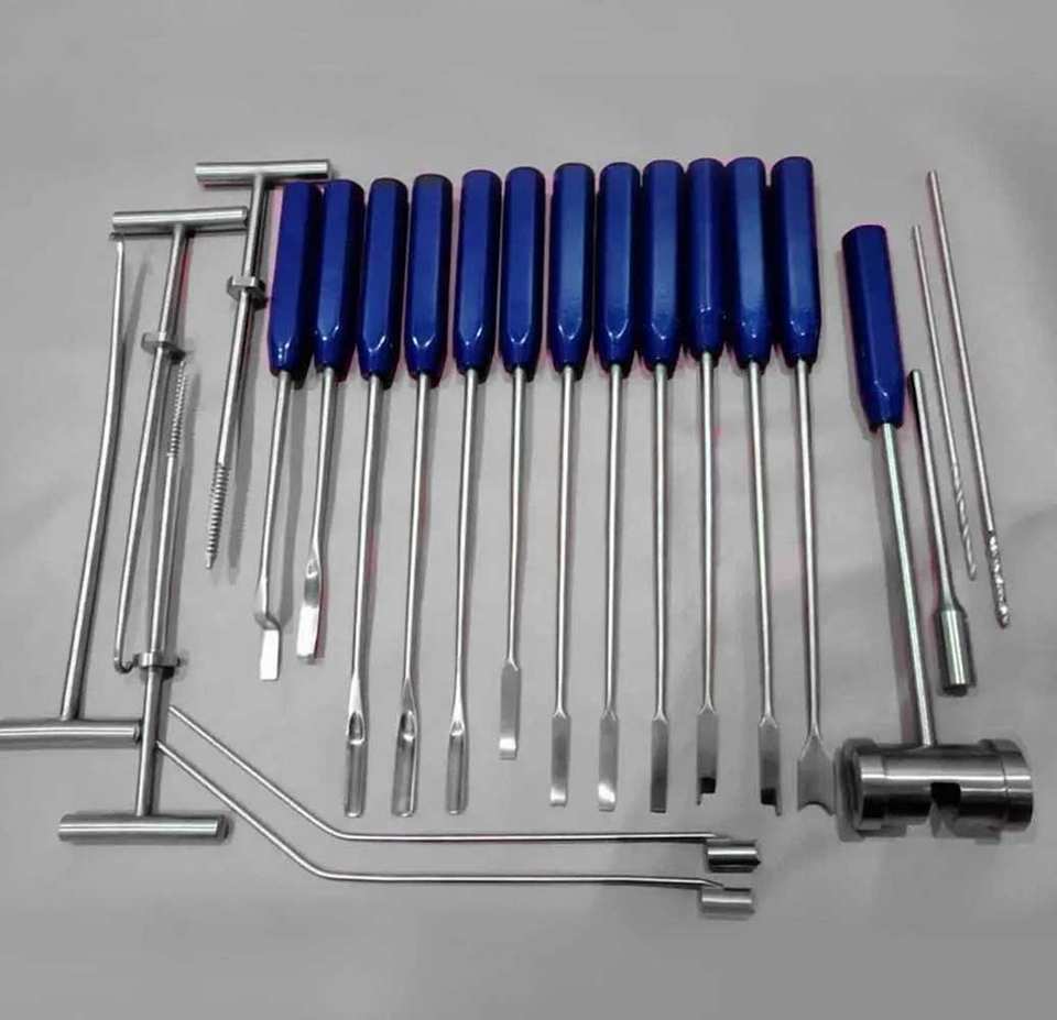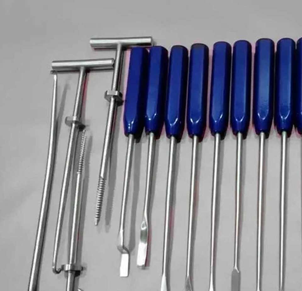 Instrumentos para Extracción de Cemento Tipo Mueller, Juego Azul de 22 Piezas, Herramientas Quirúrgicas Ortopédicas Manuales de Acero, Certificación CE Clase I, 1 Año de Garantía