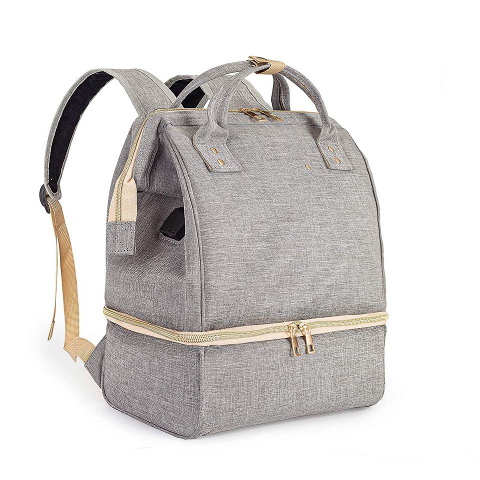 Muestra gratis bolsa de doble capa de madre de trabajo al aire libre mochila con puerto de carga USB bolsa