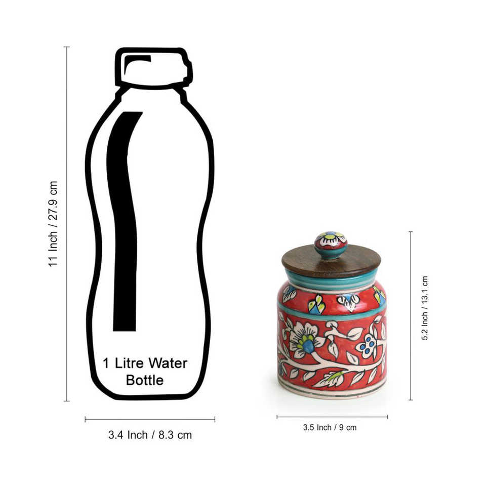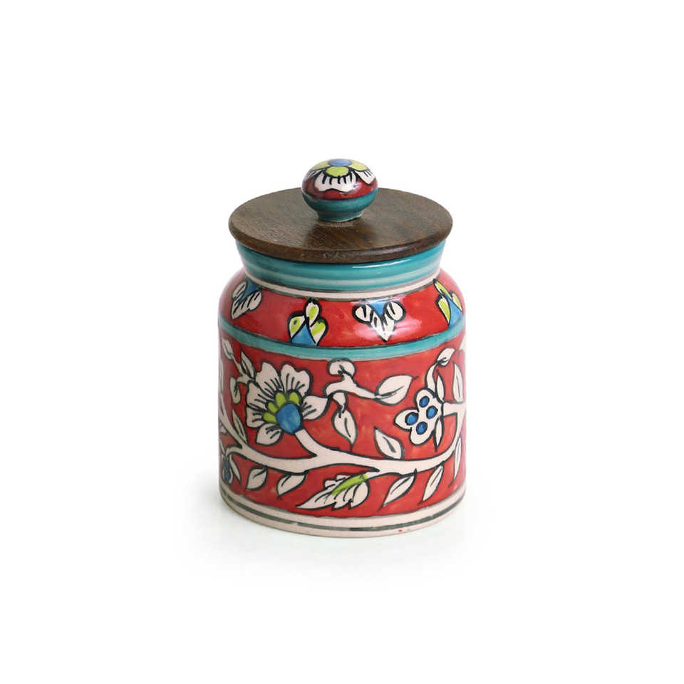 COLOUR:JAR: Red with multicoloured Hand-painting, LID: Brown
