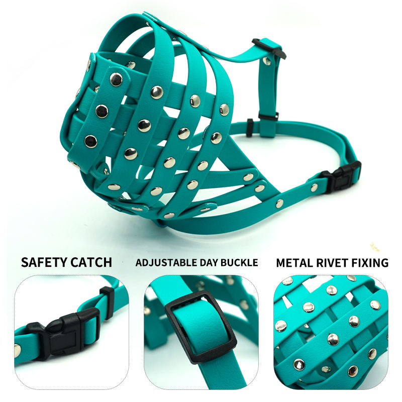 Bozal personalizado antimordedura para perro Muker, impermeable, recubierto de PVC, a la moda, ajustable, remache sólido, bozal personalizado para perro