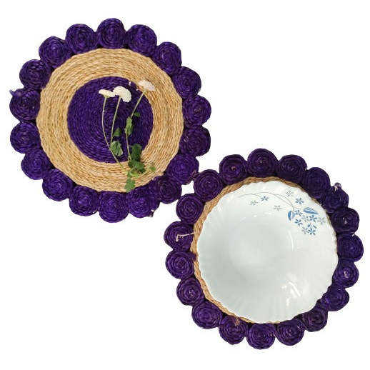 Mukherjee Handdicrafts Juego de 2 manteles de mesa de Yute natural Almohadillas de algodón de 10 pulgadas Accesorios de decoración hechos a mano