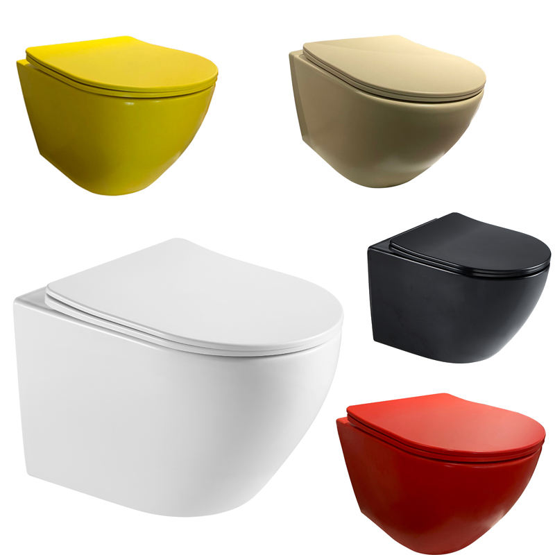 Inodoro colgado en la pared sin montura Mulit Color, inodoro de cerámica de una pieza, dimensiones pequeñas, trampa P, inodoro colgado en la pared, tazón montado en la pared