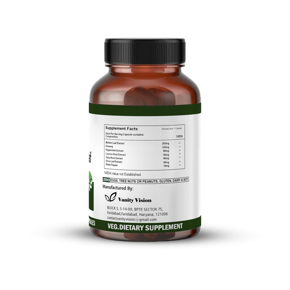 Ingrediente principal:Mullein Leaf Extract, OshaRoot Extract