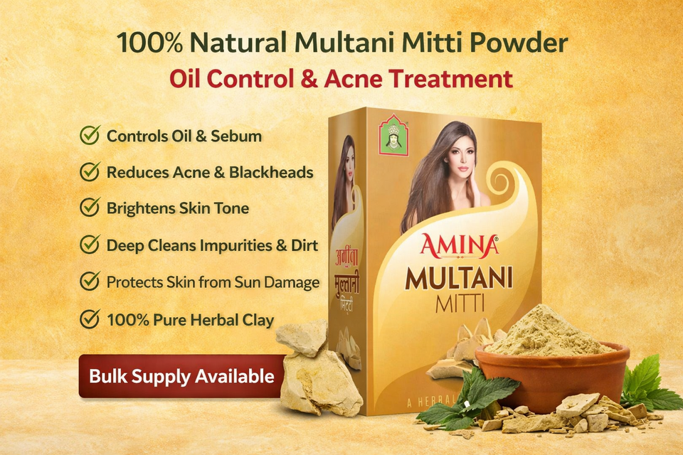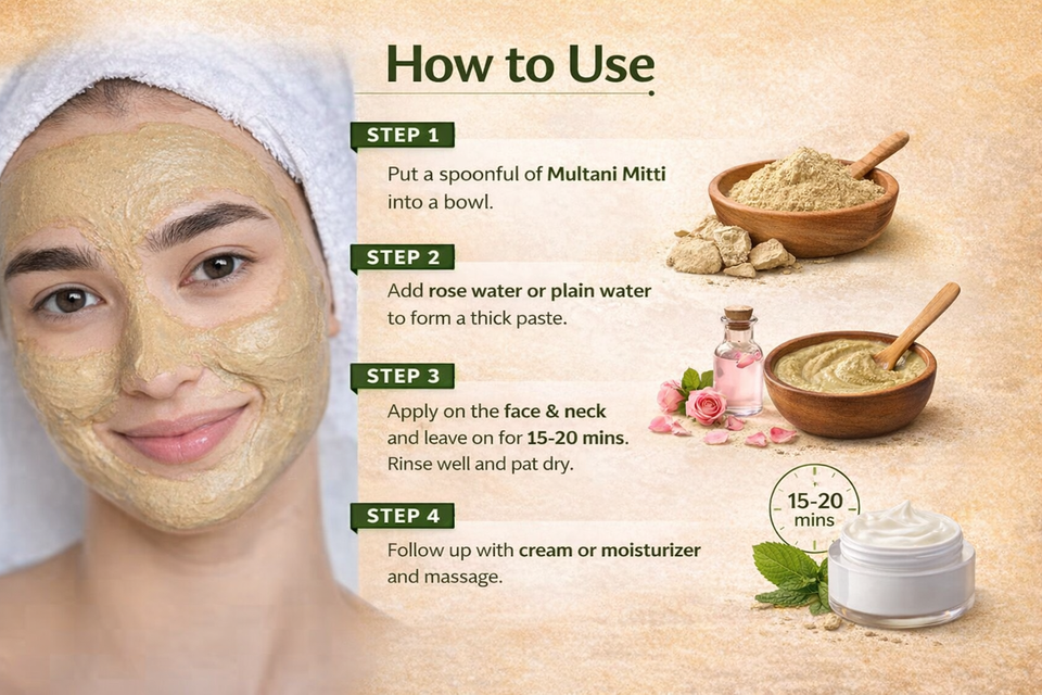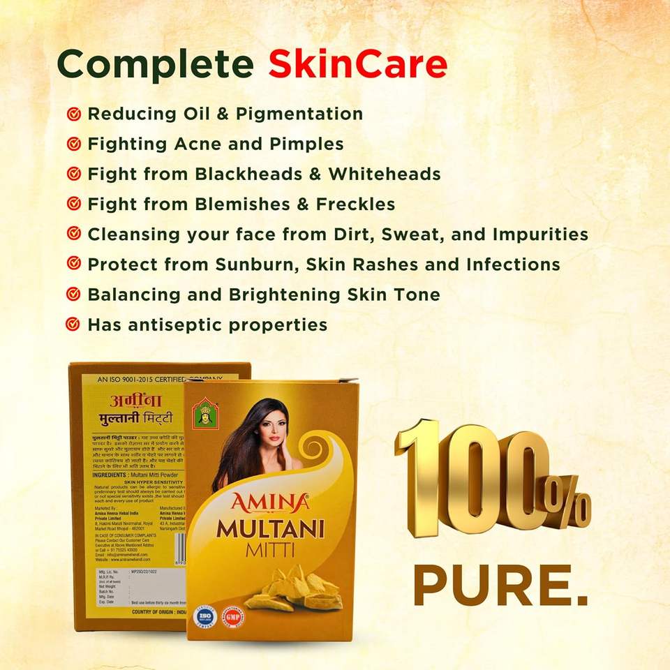 Polvo Multani Mitti (Tierra de Fuller Natural) Mineral Orgánico Herbal Antienvejecimiento Blanqueador para la Nariz y la Cara | Control de Grasa y Acné