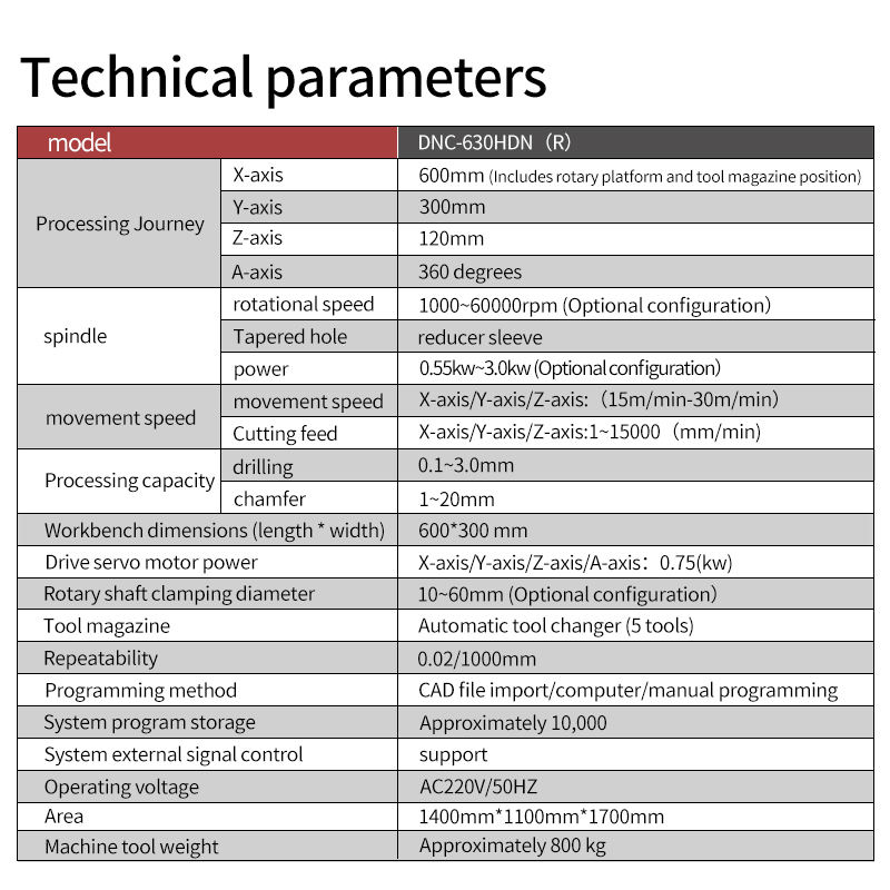 X-axis effective travel:600mm(Including rotary axis and tool magazine)