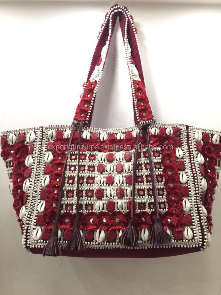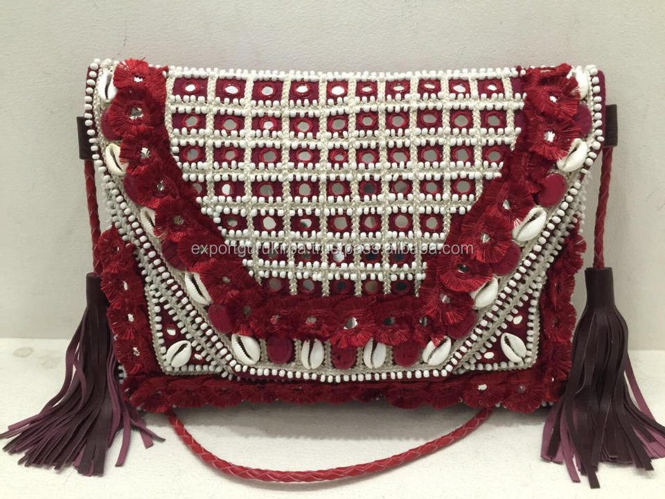 Bolso de Mano Estilo Bohemio Gitano con Cuentas y Conchas para Mujer