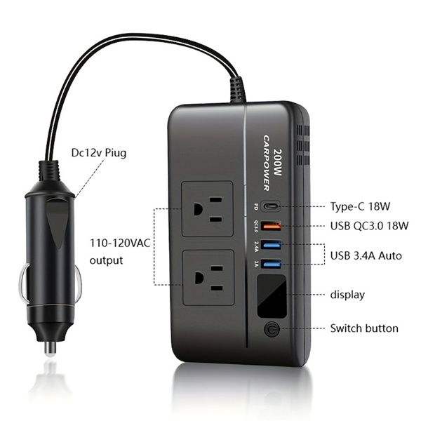 Multi-Bulb Car Inverter Socket 12V to 220V Multifunctional Power Converter