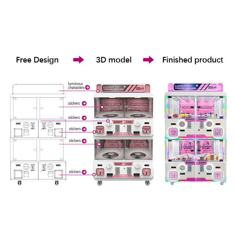 Máquina Expendedora de Cápsulas de Juguetes Multi-Gabinete, Máquina Arcade Gacha Gachapon con Monedas, Fichas, Código QR y Pago con Tarjeta de Crédito