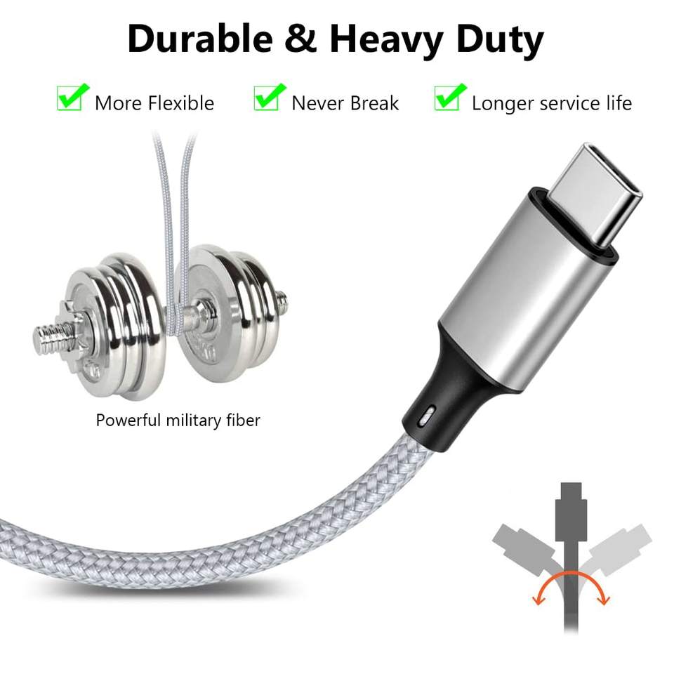Cable de carga múltiple PD USB C Cable de cargador rápido Cable trenzado de nailon Conectores 3 en 1 C a tipo C Compatible con computadora portátil/teléfono