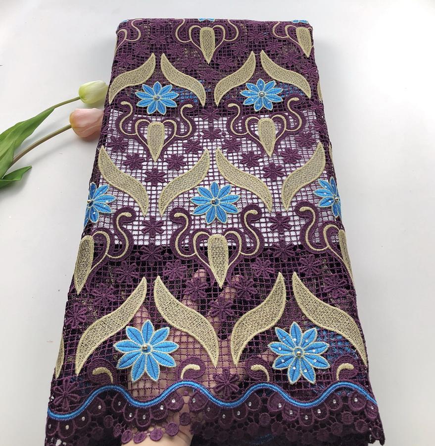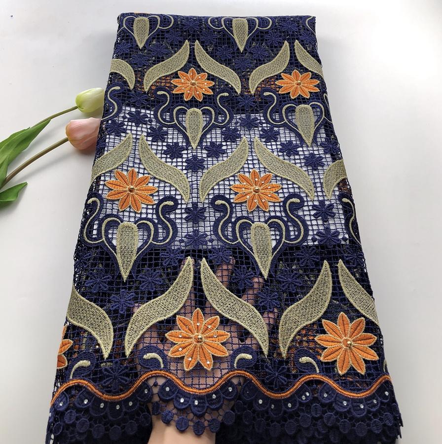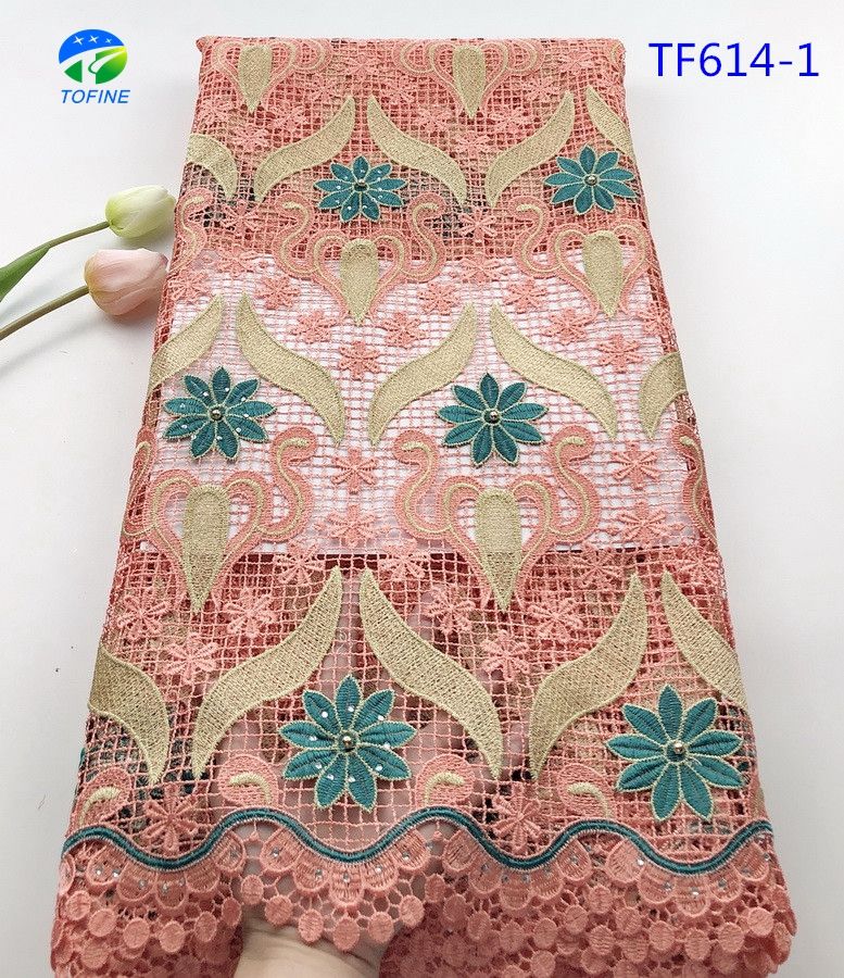 Tela de encaje de cordón de alta calidad de encaje de guipur africano multicolor con cuentas para fiesta