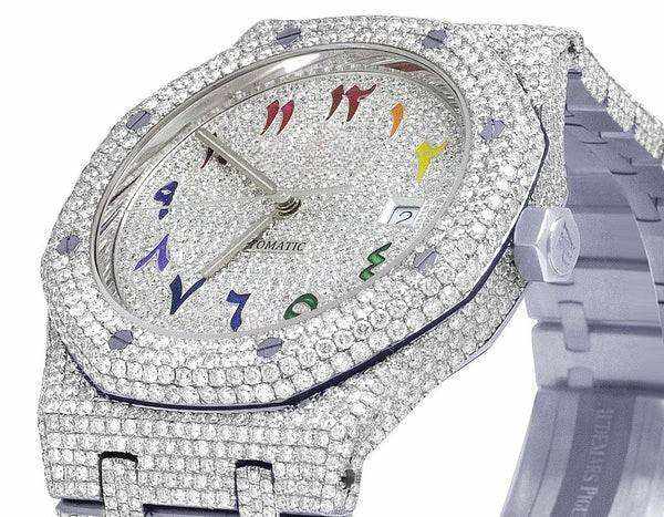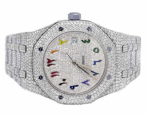 Reloj de Lujo para Hombre con Esfera Árabe Multicolor, Movimiento de Cuarzo, Diamantes VVS, Moissanita y Acero Inoxidable, en Oferta a Bajo Precio