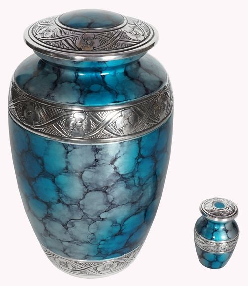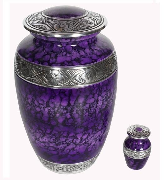 Urna Funeraria Multicolor para Cenizas Humanas, Urna de Metal para Cenizas de Cremación, Urna Plateada Grabada para Adultos, Urna Conmemorativa de Metal