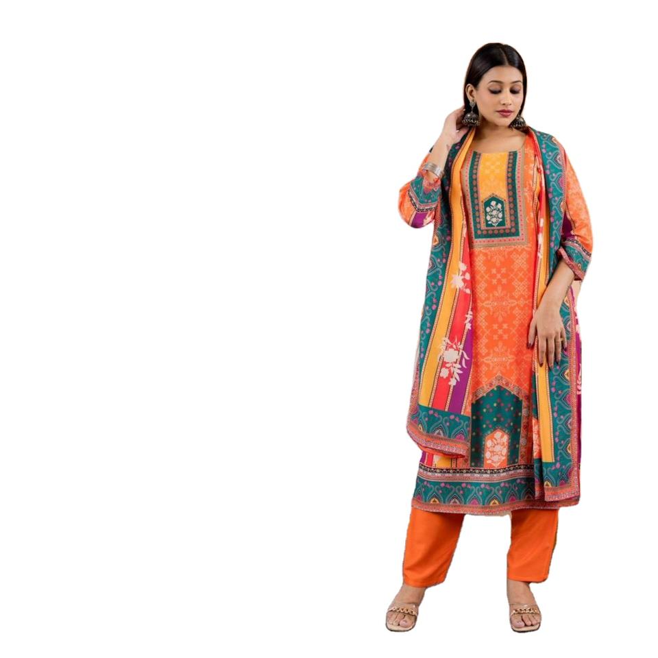 Multi Color bordado Digital impreso Super calidad mejor diseño hermoso Maslin Kurti con Dupatta Set para mujeres Festival
