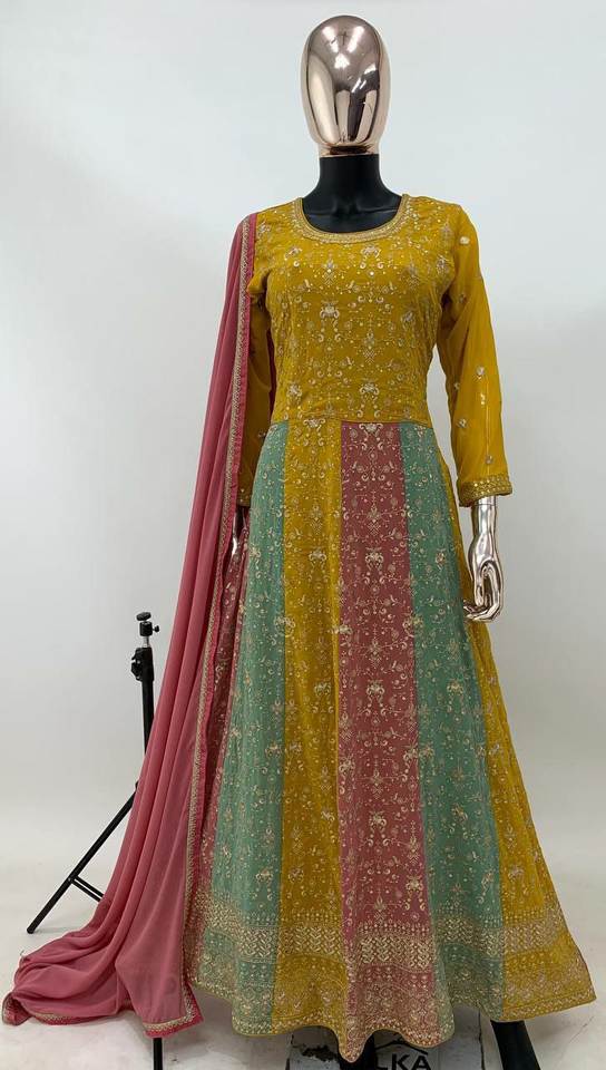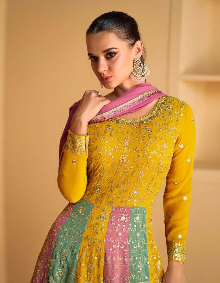 Bordado multicolor Trabajo de piso Estilo anarkali Boda y fiesta Especial Últimos diseños paquistaníes Salwar Kameez a precio mayorista