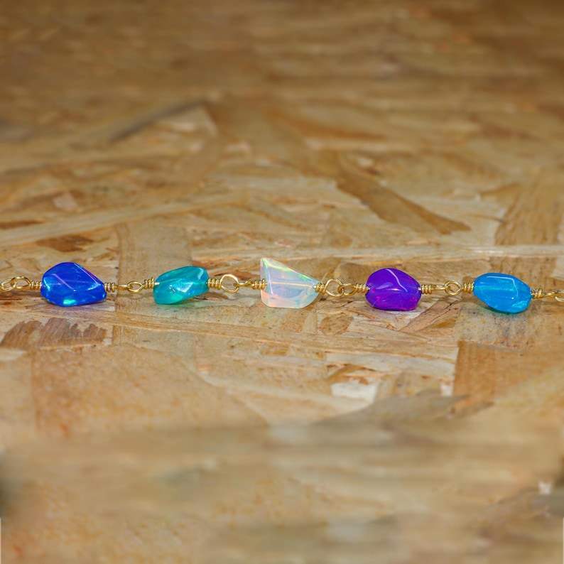 Pulsera de cadena de oro de caída de ópalo de fuego multicolor para mujer, joyería de piedras preciosas etíopes, regalo de piedra natal de Octubre hecho a mano para ella