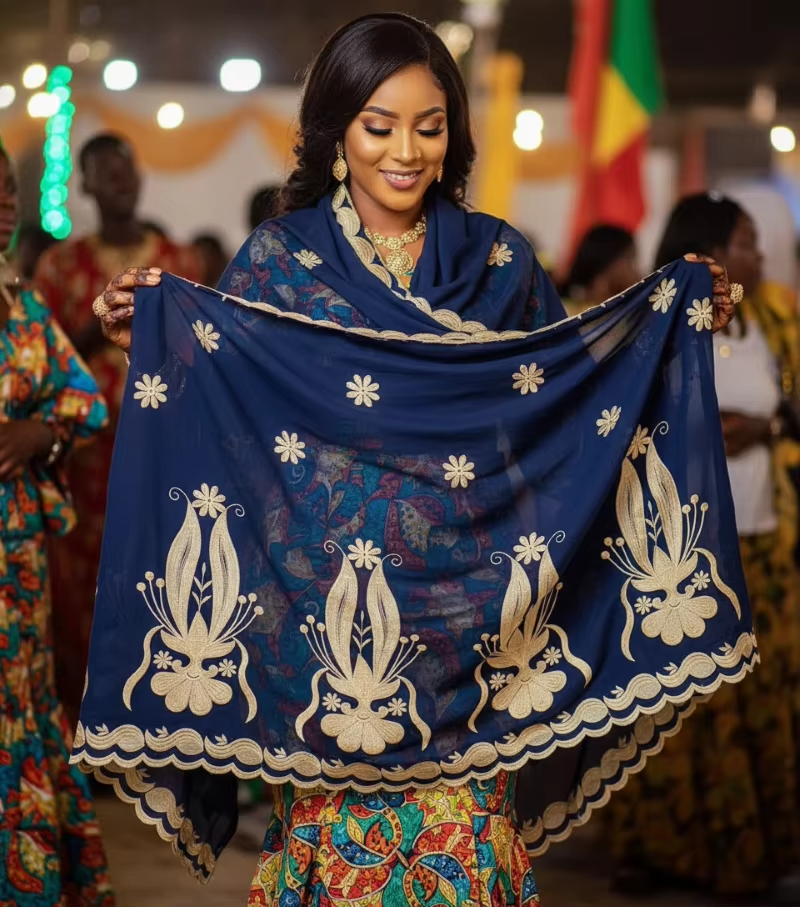 Chal de Mujer Multicolor con Estampado Floral, Ligero, Suave y Transpirable, de Algodón Voile, con Bordado y Pedrería para Uso Diario