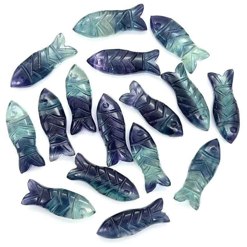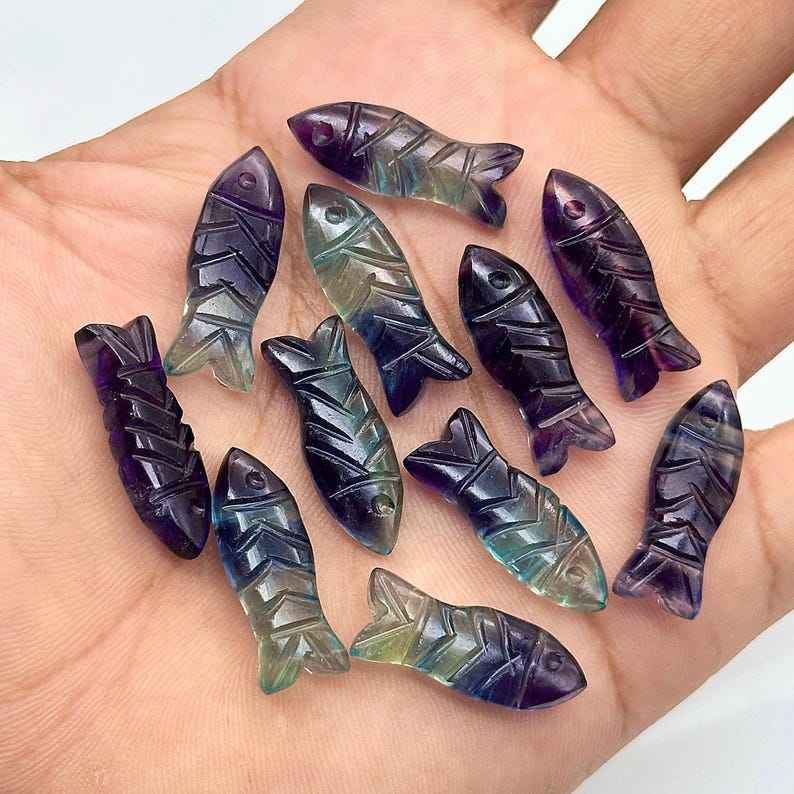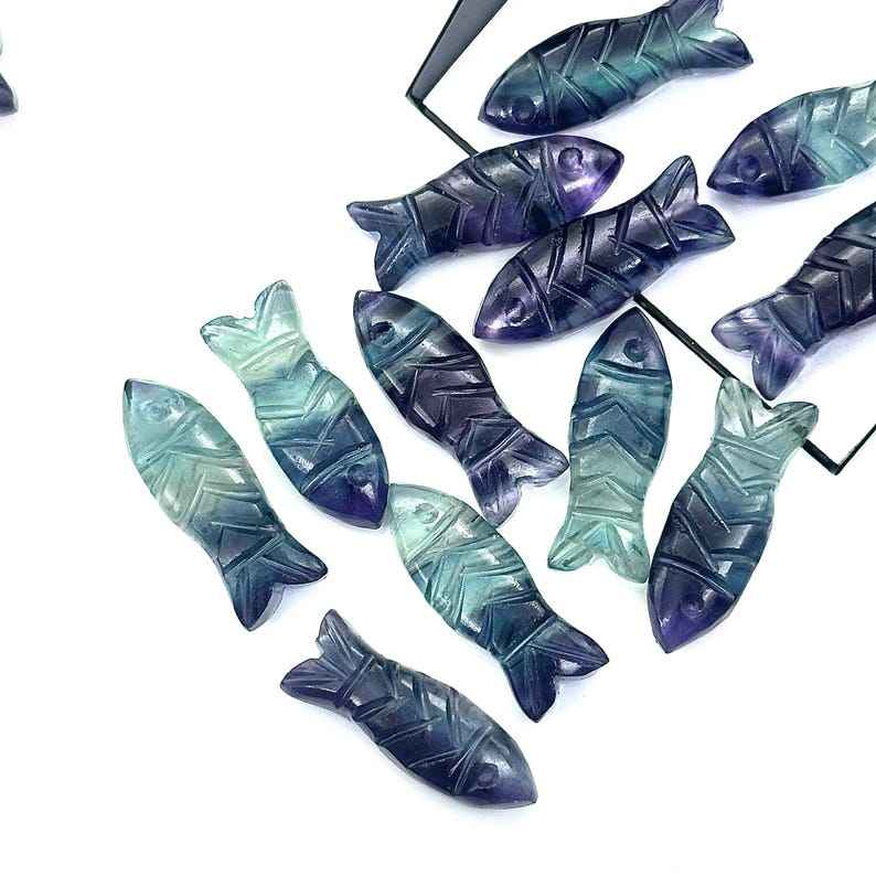 Cuentas de Piedras Preciosas Talladas en Forma de Pez de Fluorita Multicolor de 23X9 MM, Dijes de Cristal con Forma de Pez para Joyería