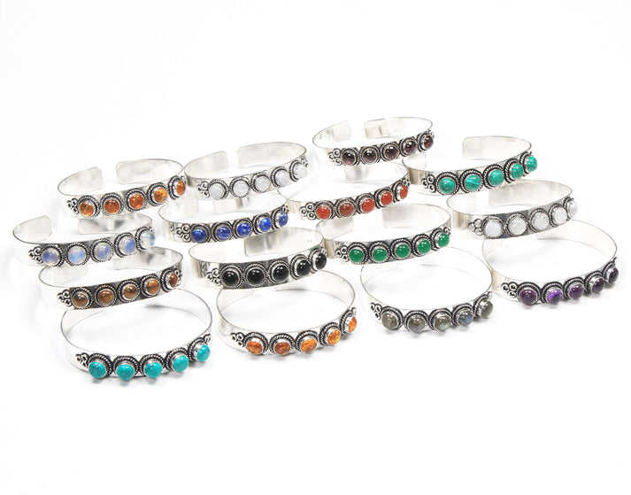 Brazalete Ajustable con Piedras Preciosas Multicolores, Plateado, Estilo Bohemio, Geométrico, con Cristales Naturales Surtidos