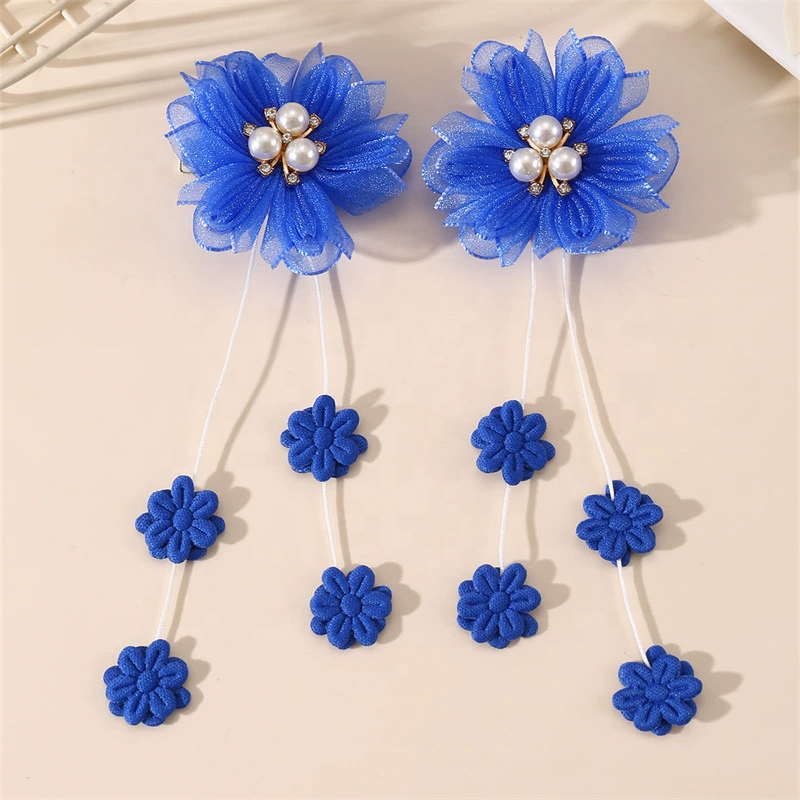 Pinzas para el Cabello Multicolores, Pasador de Pelo con Flores de Malla Dulce, Accesorio para el Cabello con Borlas y Perlas para Niñas