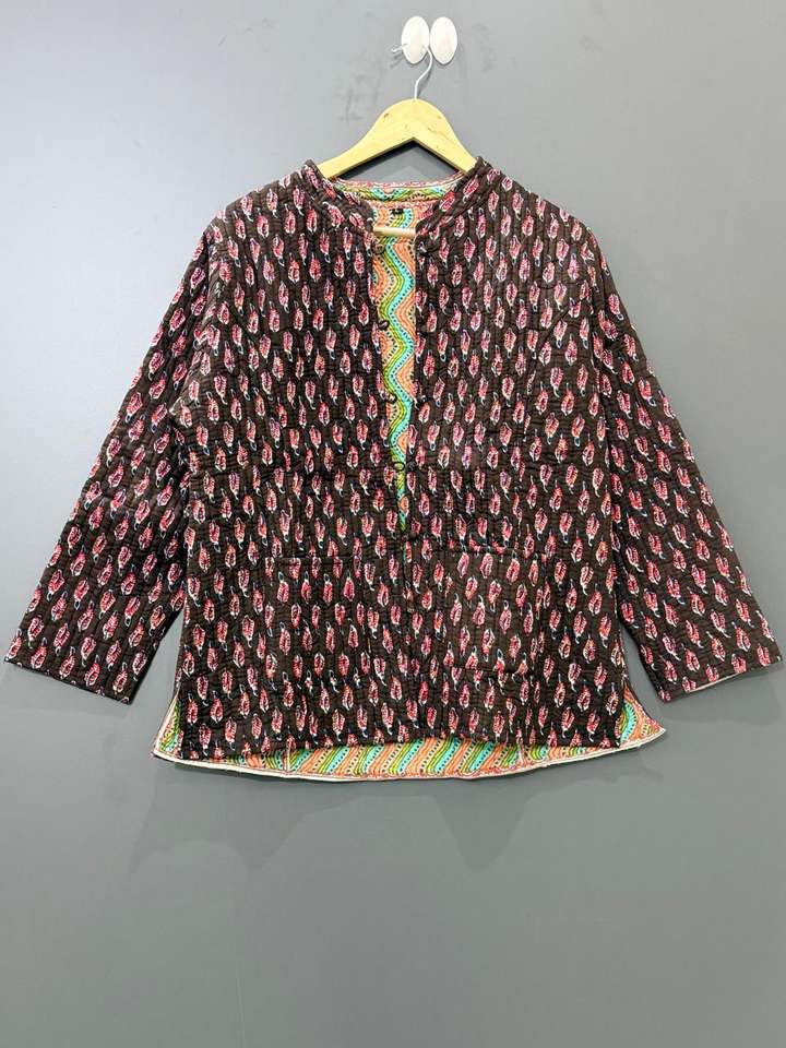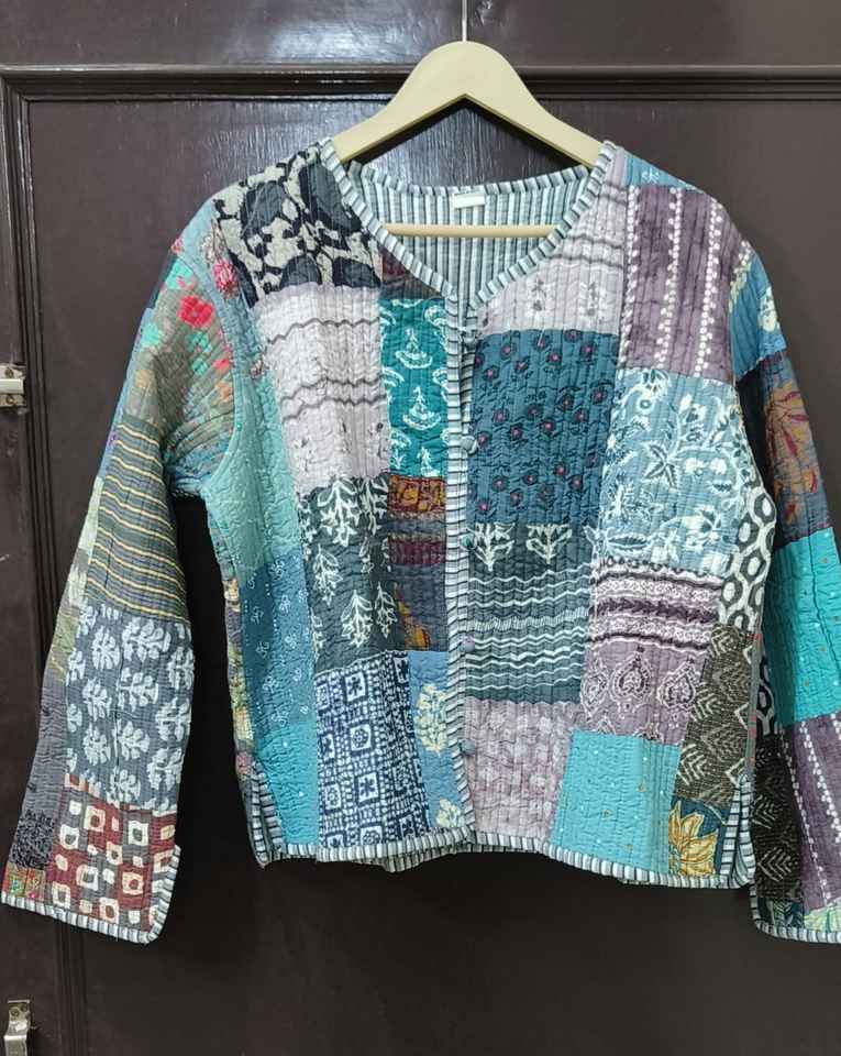 Chaqueta Acolchada de Algodón Estampada a Mano Multicolor, Chaqueta Corta de Patchwork para Mujer, Abrigo de Invierno Hecho a Mano, Chaqueta de Estilo Bohemio