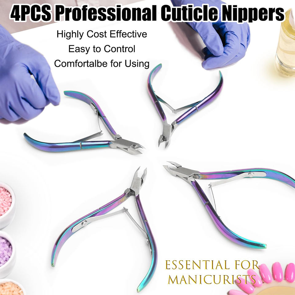 Juego de pinzas para manicura de uñas con mangos multicolores, pulido de espejo, acero inoxidable, uso en el hogar y el salón, juego de pinzas para uñas encarnadas