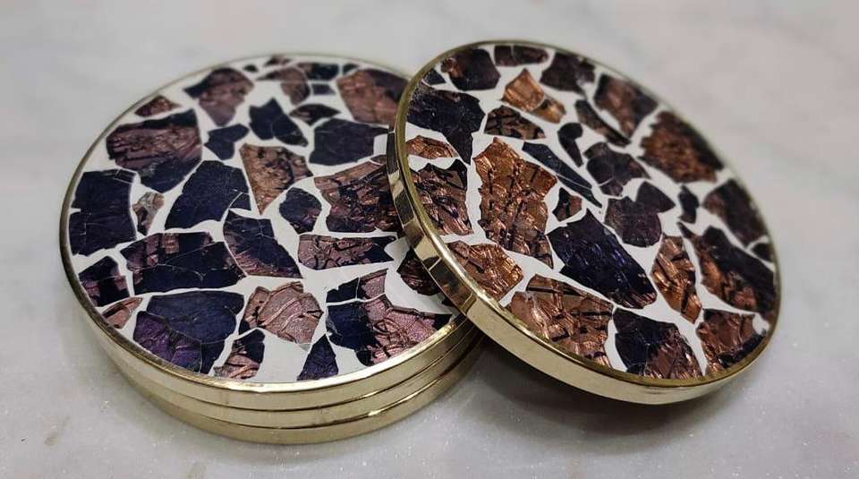 Juego de posavasos de taza de té con incrustaciones de nácar multicolor para artículos para el hogar, bandeja de mesa, posavasos de café, juego creativo de posavasos para fregona