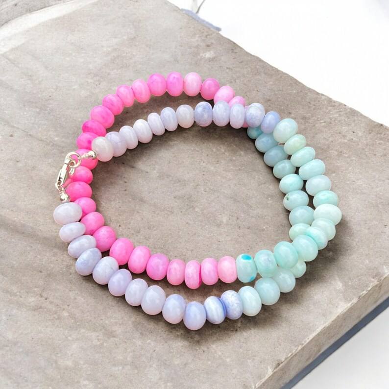 Collar de cuentas de ópalo multicolor hecho a mano, cuentas de piedras preciosas lisas Rondelle de 7-8mm con cierre de langosta, regalo de joyería al por mayor