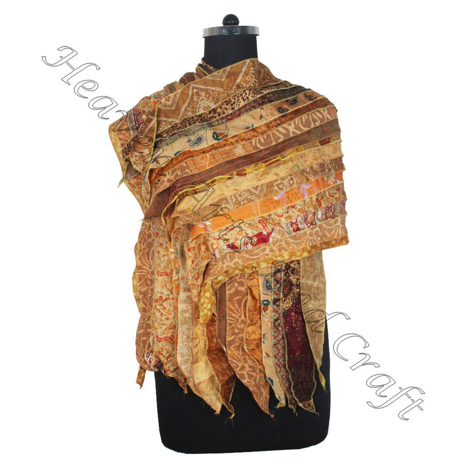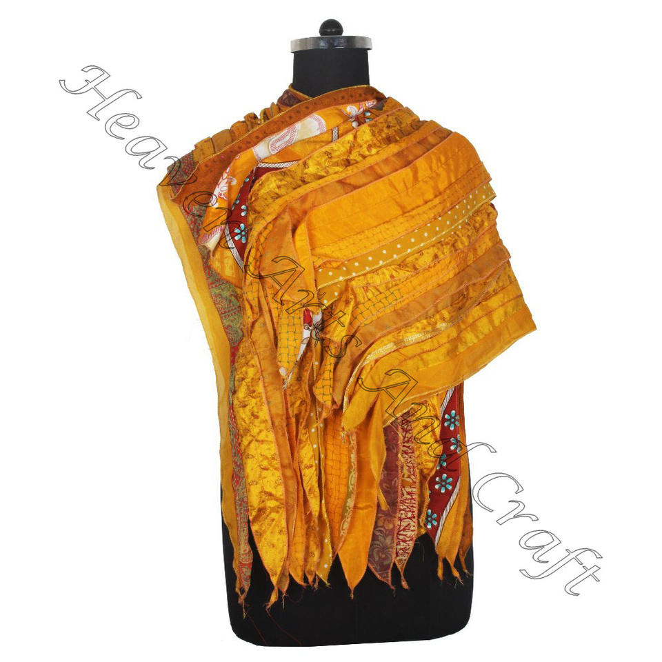 Multicolor Patchwork 15 tiras bufanda de seda bufandas al por mayor reciclado Fabricante Mayorista de India Sari parches reversibles