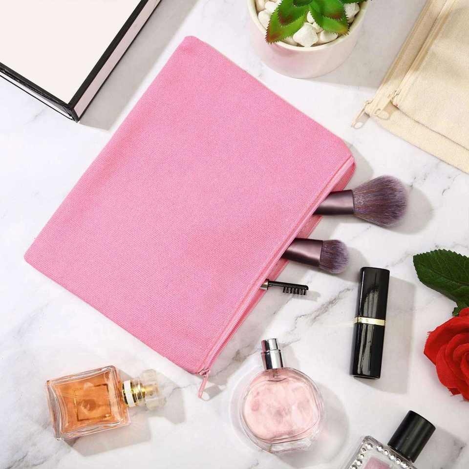 Bolsa de Mano de Lona Vintage Multicolor, Ecológica, Reutilizable, Estuche Cosmético Grande con Cierre, 7x10 Pulgadas, Natural, para Viaje