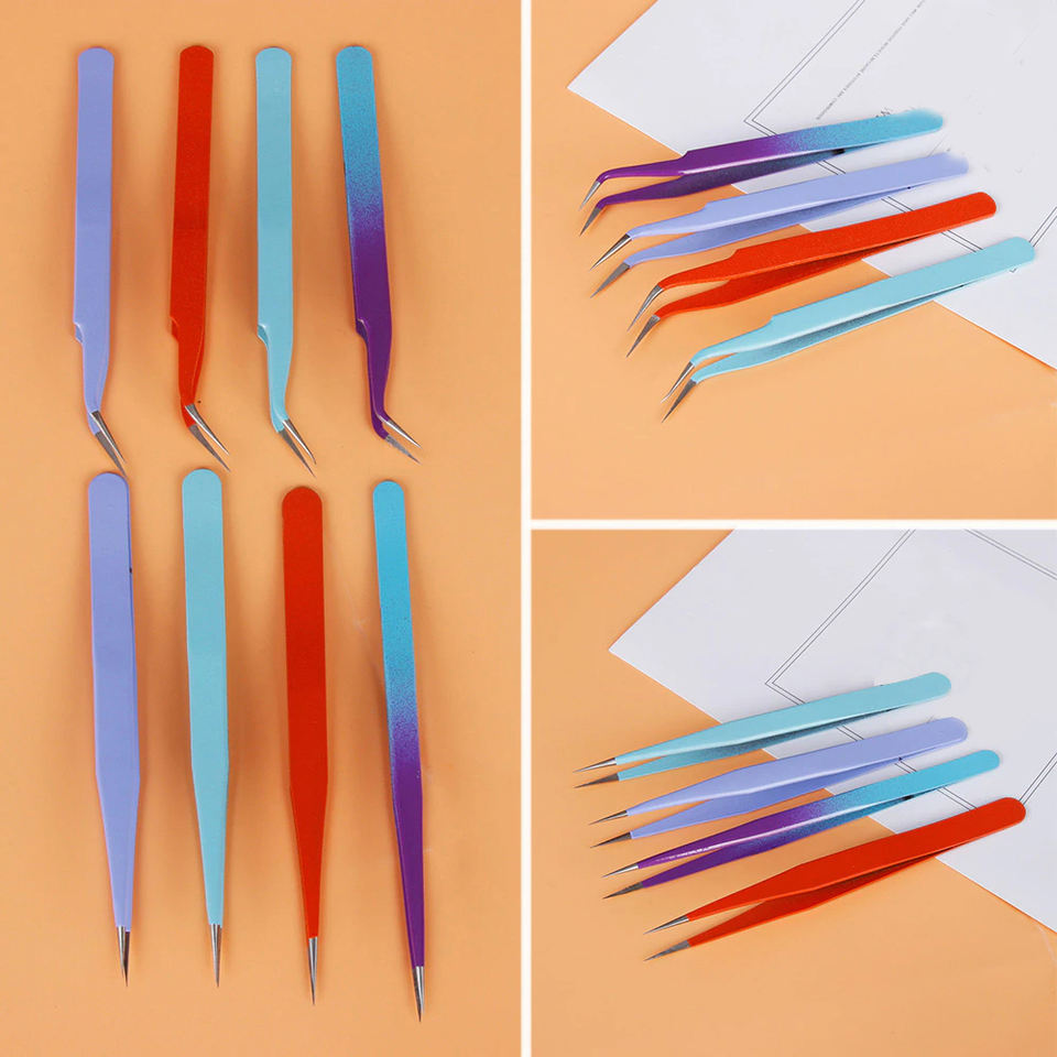 Pinzas Profesionales Multicolor de Acero Inoxidable para Extensión de Pestañas, Herramienta de Precisión para Aislamiento de Pestañas y Creación de Abanicos de Volumen