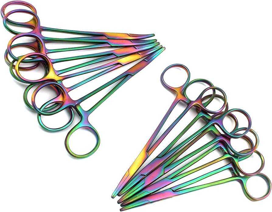 Pinzas Hemostáticas de Acero Inoxidable Multicolores con Bloqueo, Rectas, de Alta Calidad Médica, Marca Dentavex