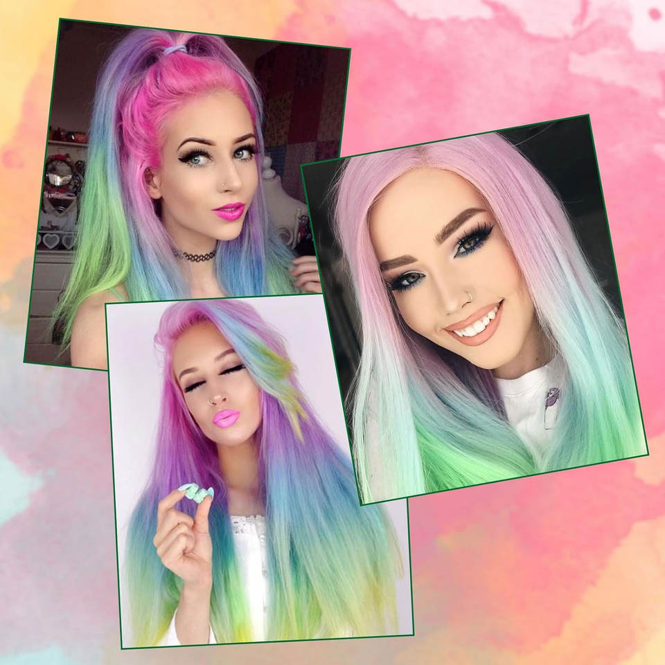Peluca de arcoíris multicolor para mujer, peluca de fiesta de fibra resistente al calor, perfecta para eventos de disfraces, fiestas temáticas, peluca recta de Cosplay