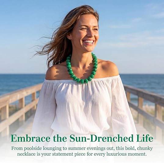 Collar llamativo de cuentas de resina multicolor - 17 pulgadas + 3 pulgadas de cadena extensora, grueso y llamativo | Joyería de Moda Audaz, Regalo para Mujer