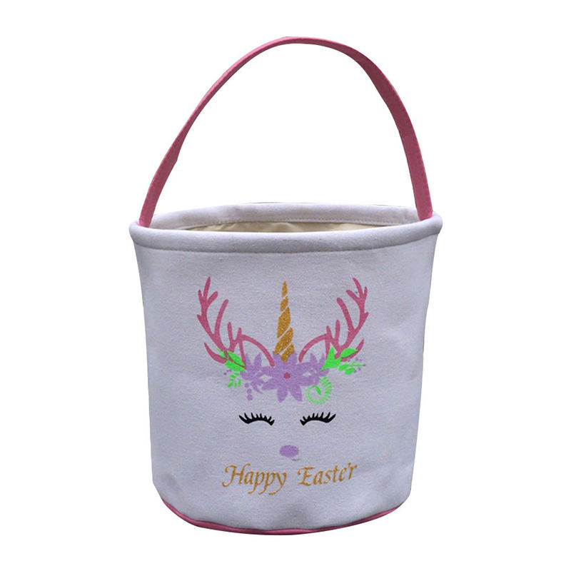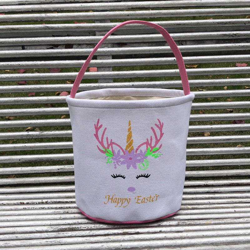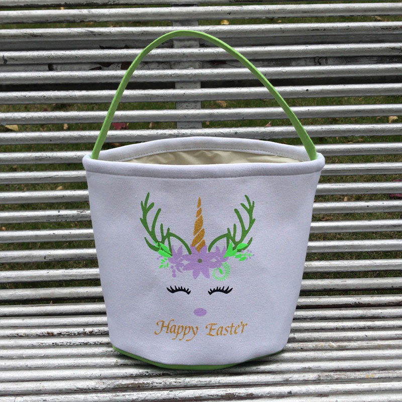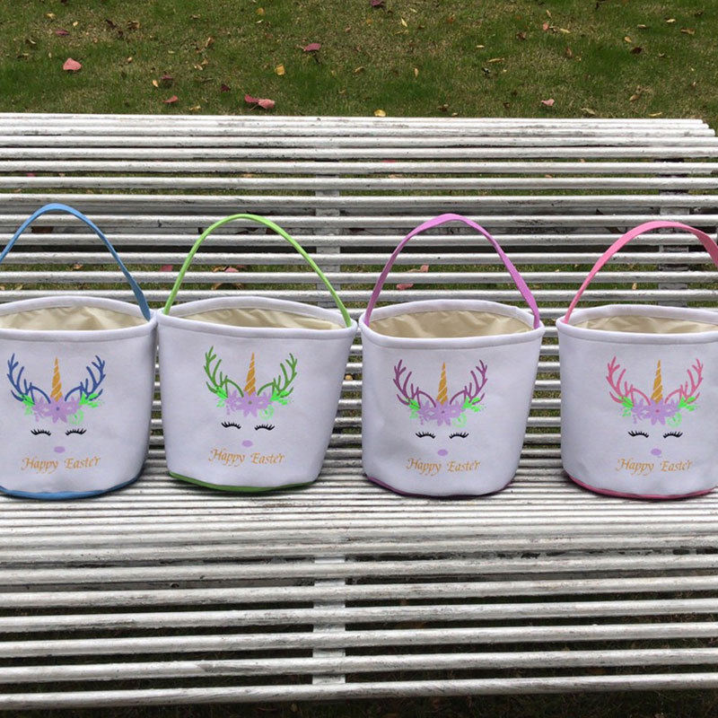 Cestas de Pascua de Unicornio Multicolores, Adornos Personalizados para el Hogar, Conejito Bordado, Cubo para la Búsqueda de Huevos de Pascua