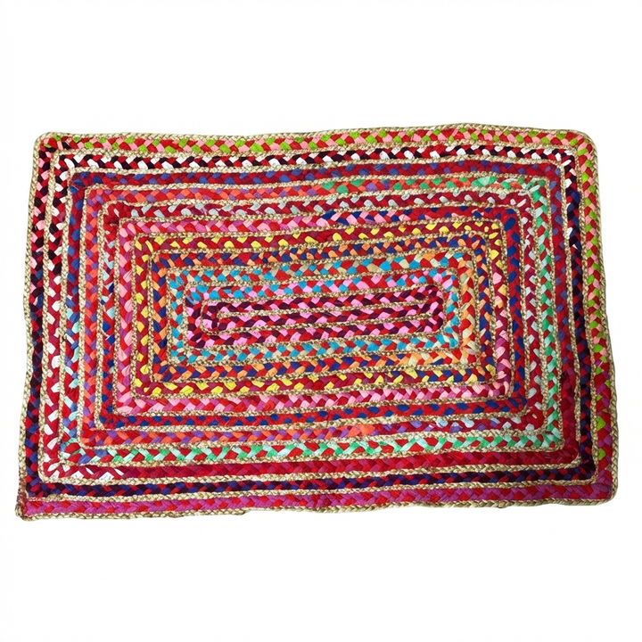 Alfombra de Bambú Multicolor de 2x3 Pies, Hecha a Mano, Reversible, Estilo Chindi, Tapete para Puerta, Ecológica, Decoración Boho para el Hogar, Antideslizante, de Pelo Alto