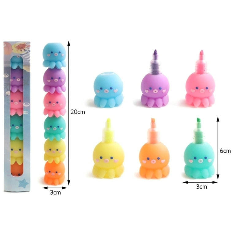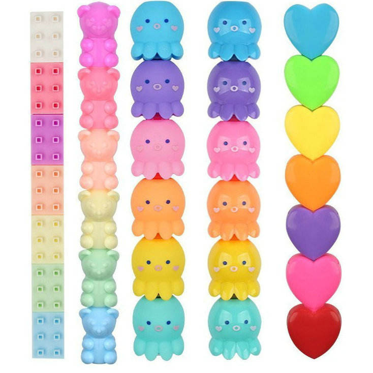 Bloque de construcción multicolor Oso Pulpo Calamar Resaltador Pluma promocional de plástico Diseño de amor para la organización de codificación de color