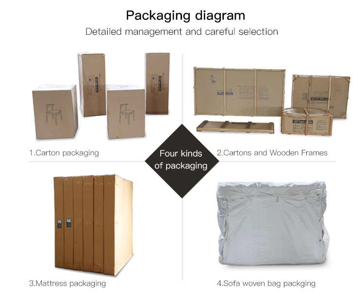 1. Bolsa de tela no tejida blanca + hoja de espuma que envuelve todas las esquinas para protección + cartón de 5 capas.