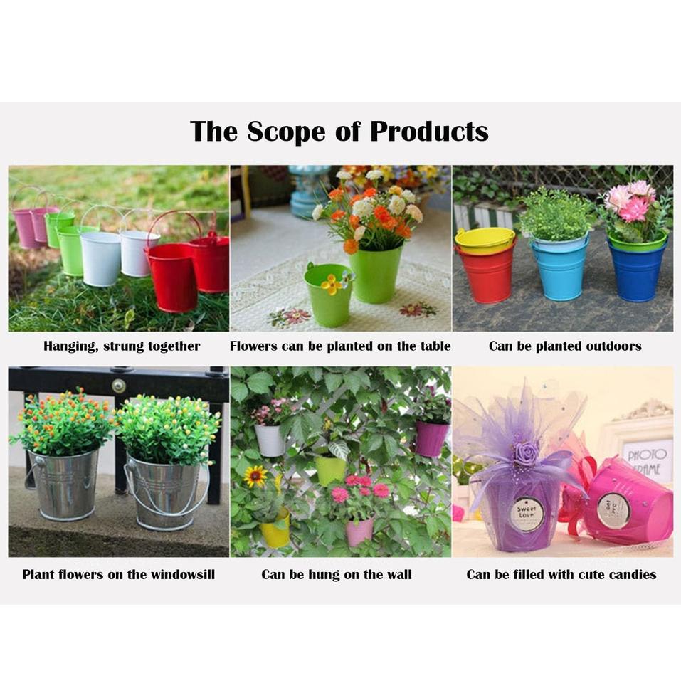 Cubo de cubo de Metal multicolor con asa para decoración de jardín Interior del hogar, maceta de flores, cubos de cubo multiusos